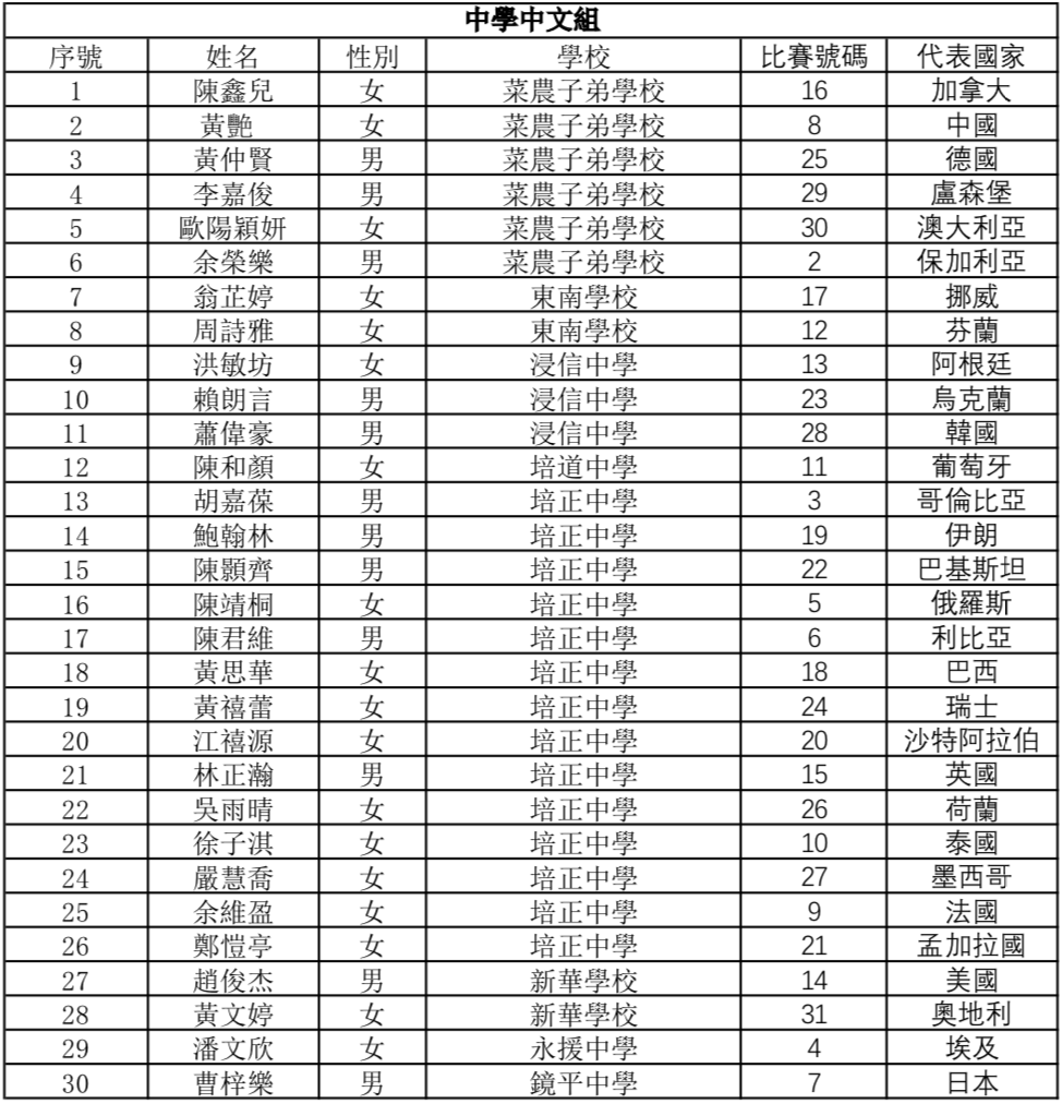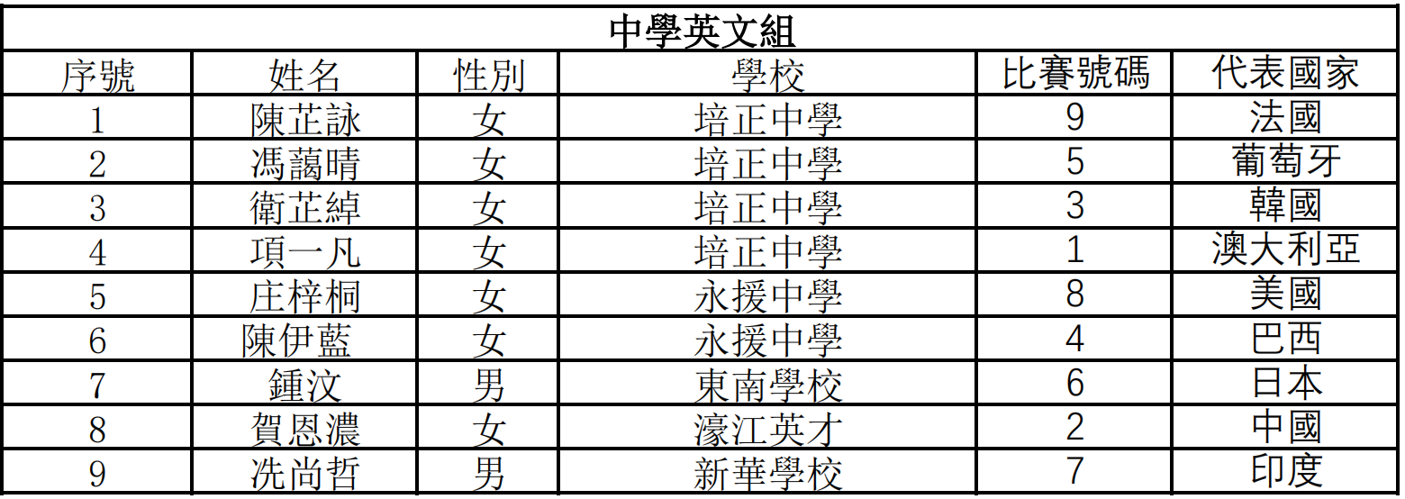 -比賽號碼和代表國家詳情下拉見抽籤視頻