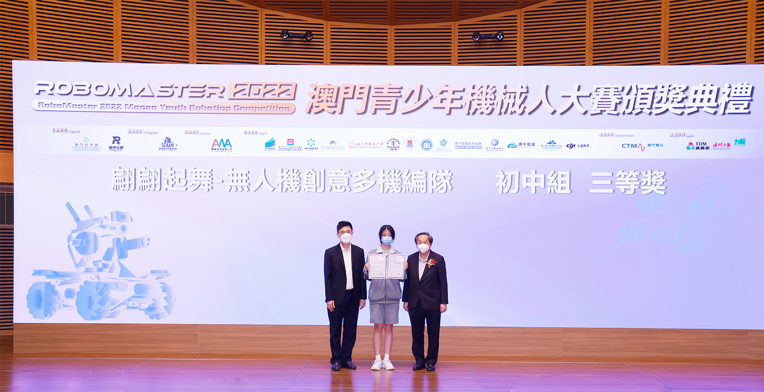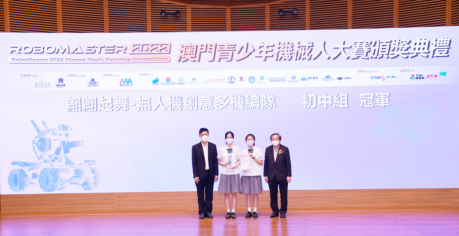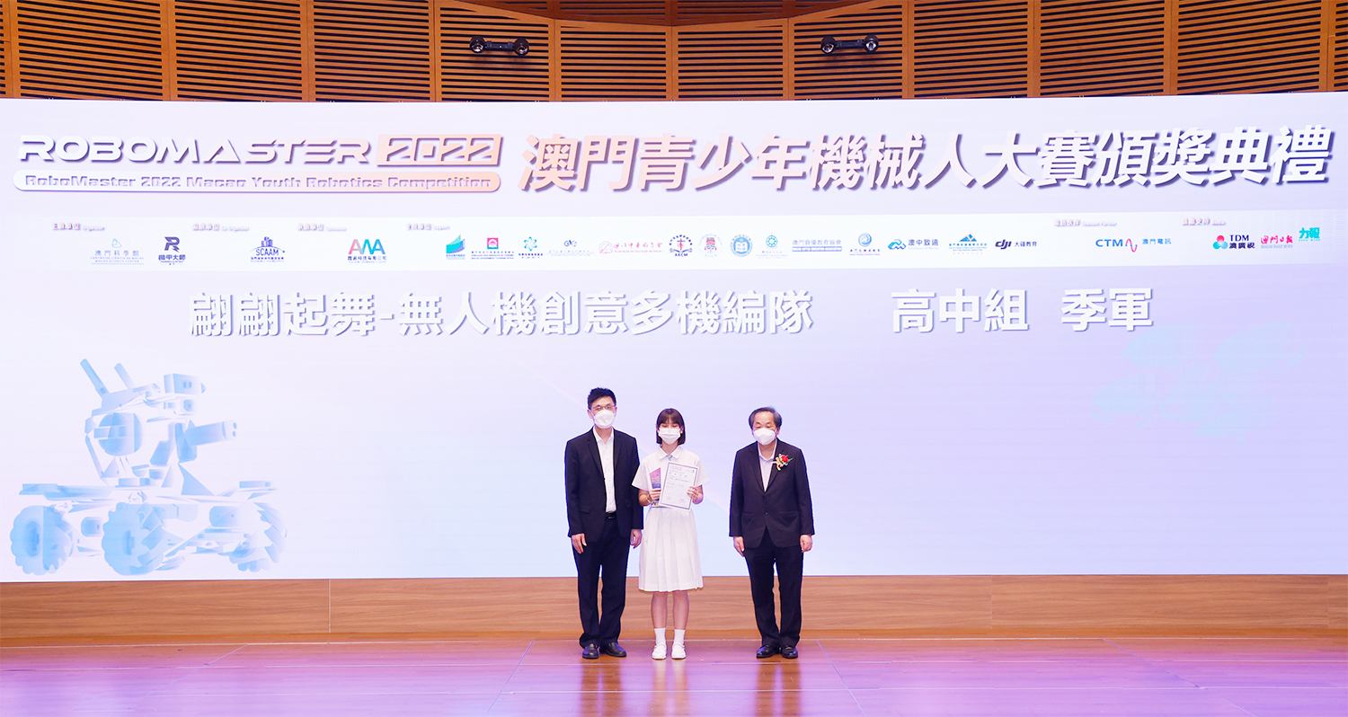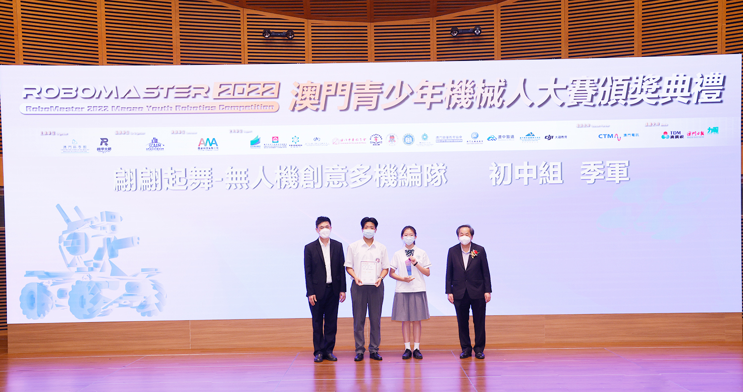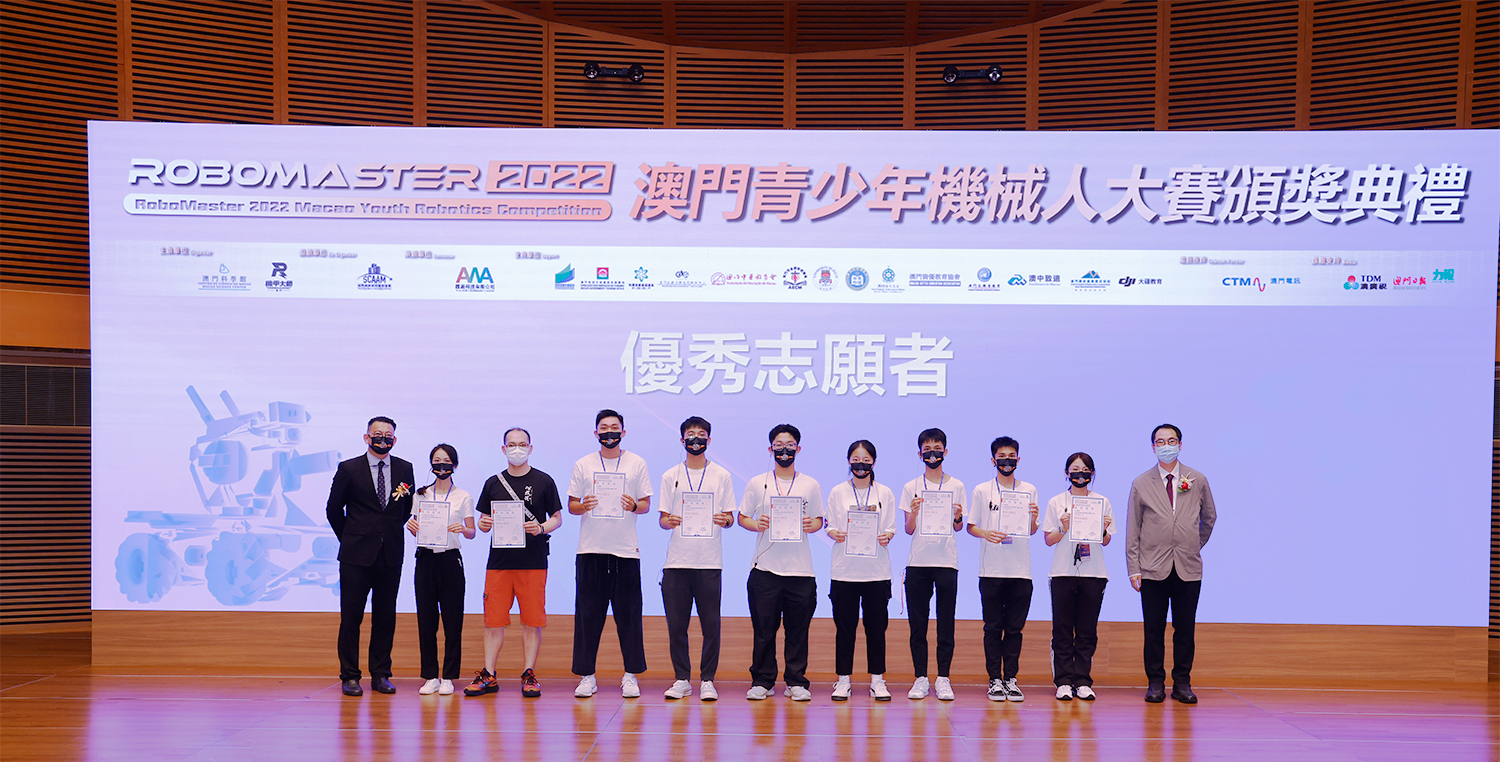 由澳門科學館和機甲大師澳門(國際)協會主辦,澳門智慧城市聯盟協會協辦,匯盈科技有限公司承辦的「RoboMaster 2022 澳門青少年機械人大賽」,在多個政府部門、機構和公司的大力支持,以及在澳門一眾學校領導及師生的積極參與和配合下,已於6月5日順利結束,並於今日在澳門科學館會議廳圓滿舉行頒獎典禮暨成果展,共23間學校約150名師生代表及優秀志願者等出席參與。本次賽事超過20間學校, 700余學生及老師參與不同賽項的競技中,通過比賽的形式為參賽隊員搭建一個全面機械人技術交流的平臺,形成濃厚的學術氛圍,他們在比賽中成長,在實踐中進步,並讓機械人競技和工程師文化進入大眾的視野,啟發更多懷有科技夢想的個人或群體,為地區科技創新發展助力。