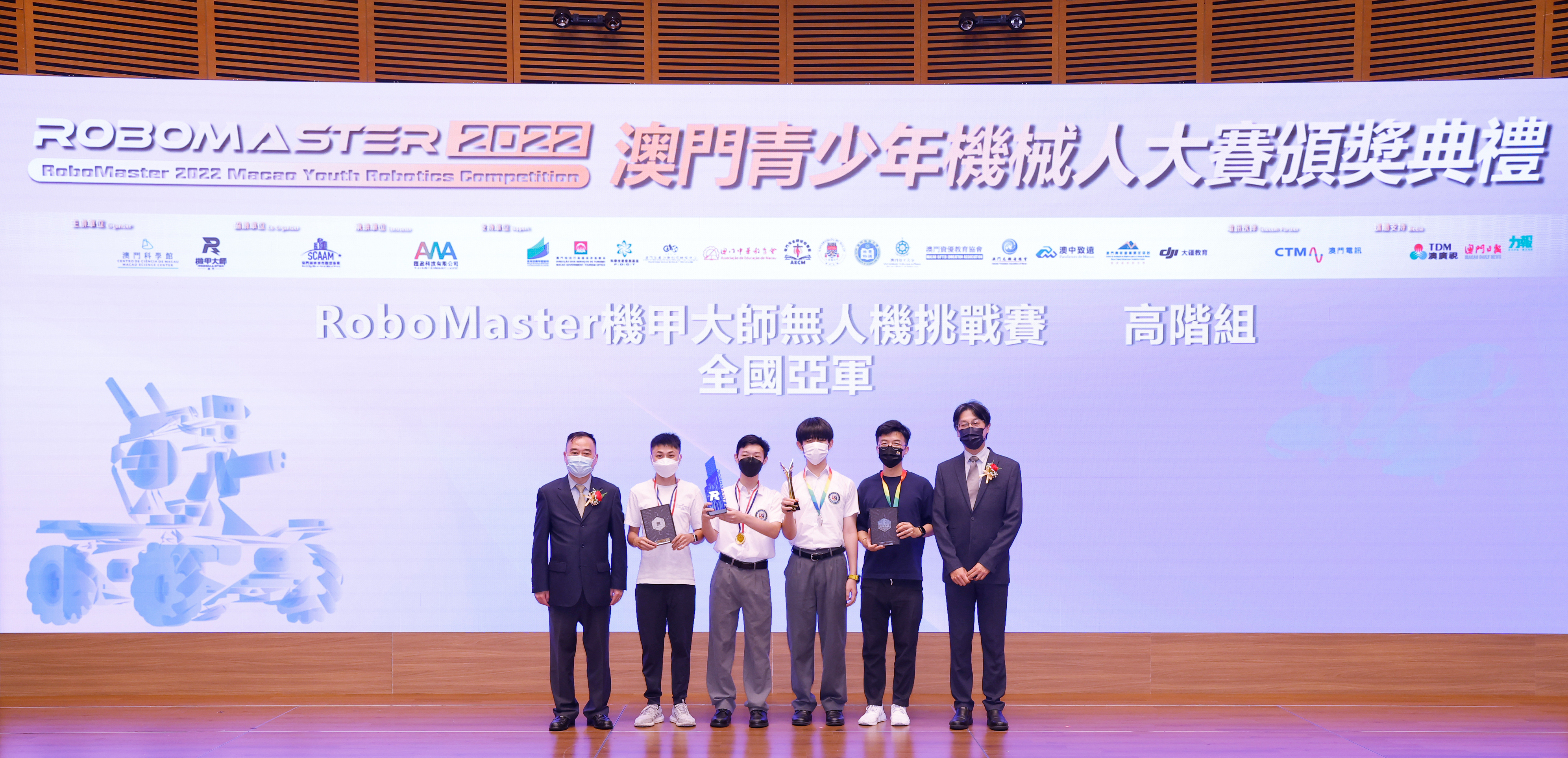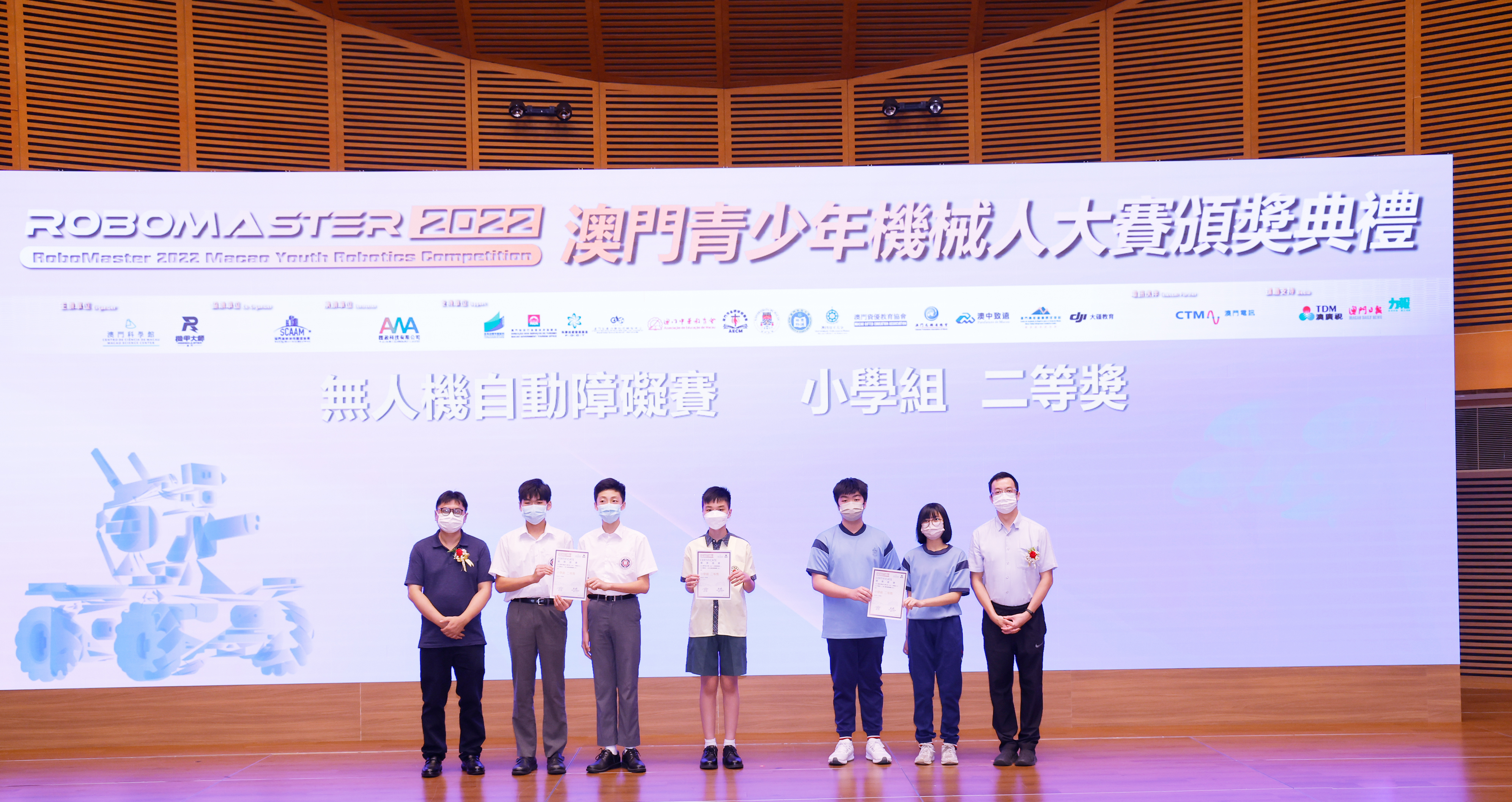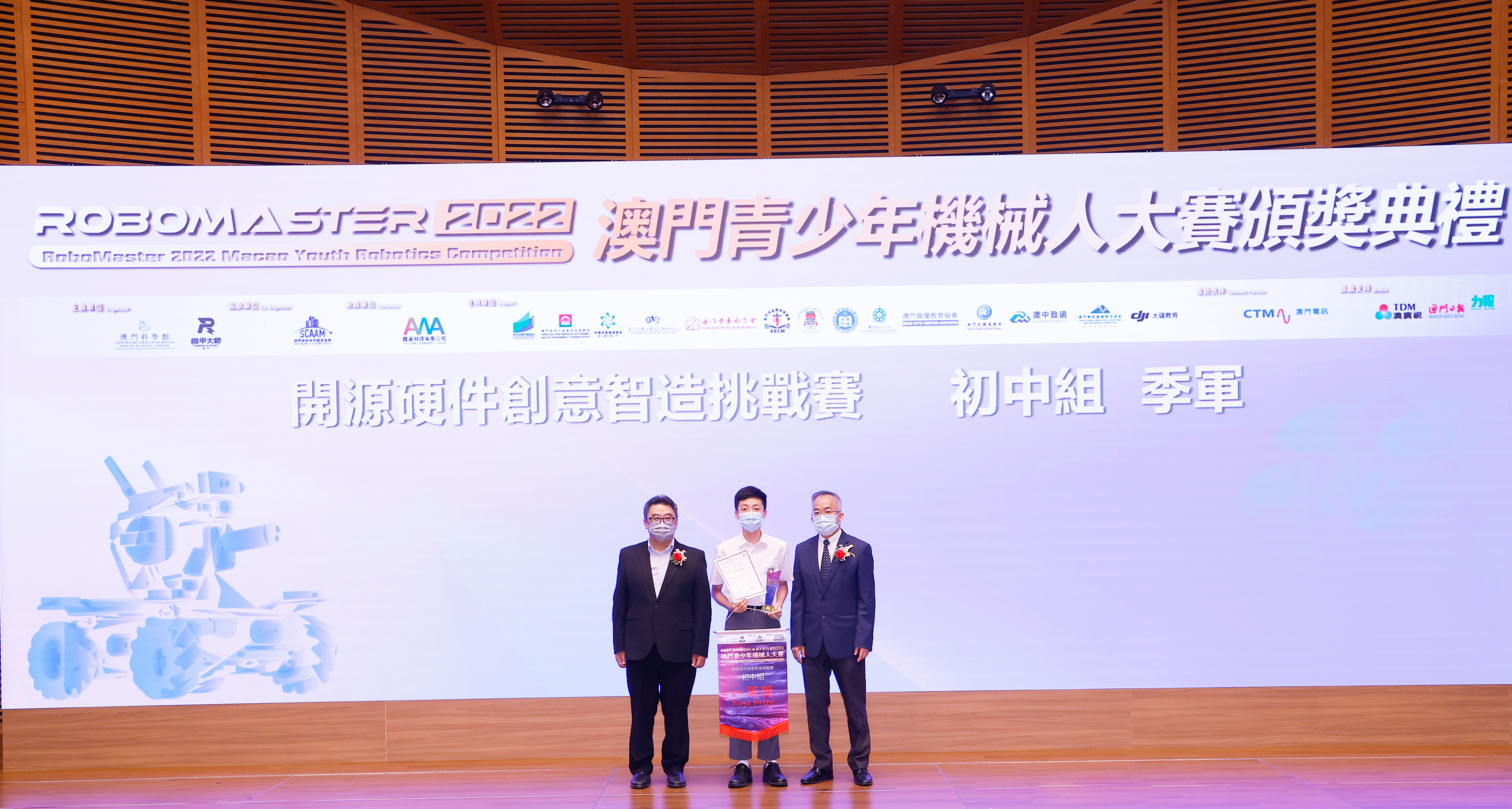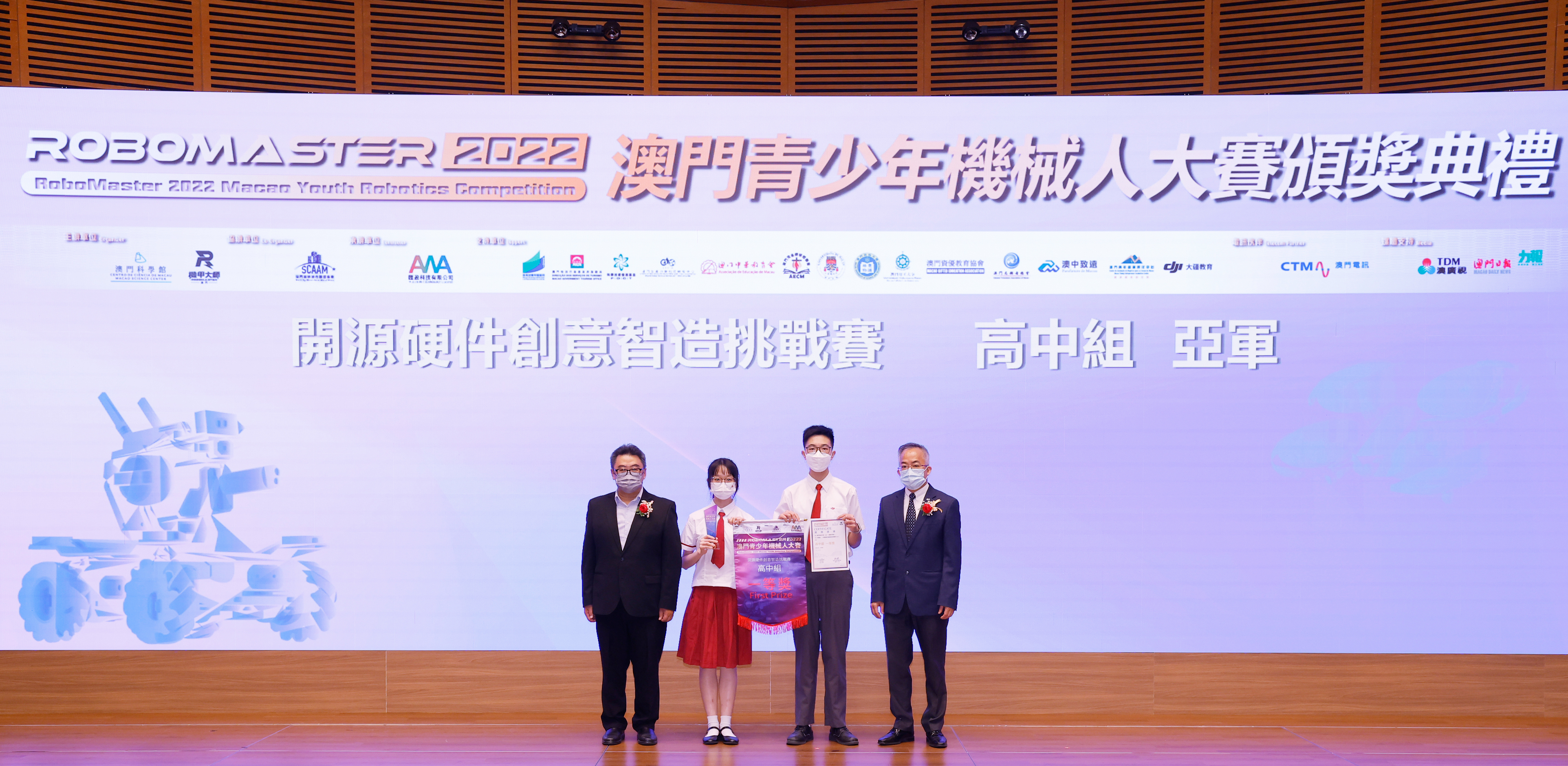 由澳門科學館和機甲大師澳門(國際)協會主辦,澳門智慧城市聯盟協會協辦,匯盈科技有限公司承辦的「RoboMaster 2022 澳門青少年機械人大賽」,在多個政府部門、機構和公司的大力支持,以及在澳門一眾學校領導及師生的積極參與和配合下,已於6月5日順利結束,並於今日在澳門科學館會議廳圓滿舉行頒獎典禮暨成果展,共23間學校約150名師生代表及優秀志願者等出席參與。本次賽事超過20間學校, 700余學生及老師參與不同賽項的競技中,通過比賽的形式為參賽隊員搭建一個全面機械人技術交流的平臺,形成濃厚的學術氛圍,他們在比賽中成長,在實踐中進步,並讓機械人競技和工程師文化進入大眾的視野,啟發更多懷有科技夢想的個人或群體,為地區科技創新發展助力。