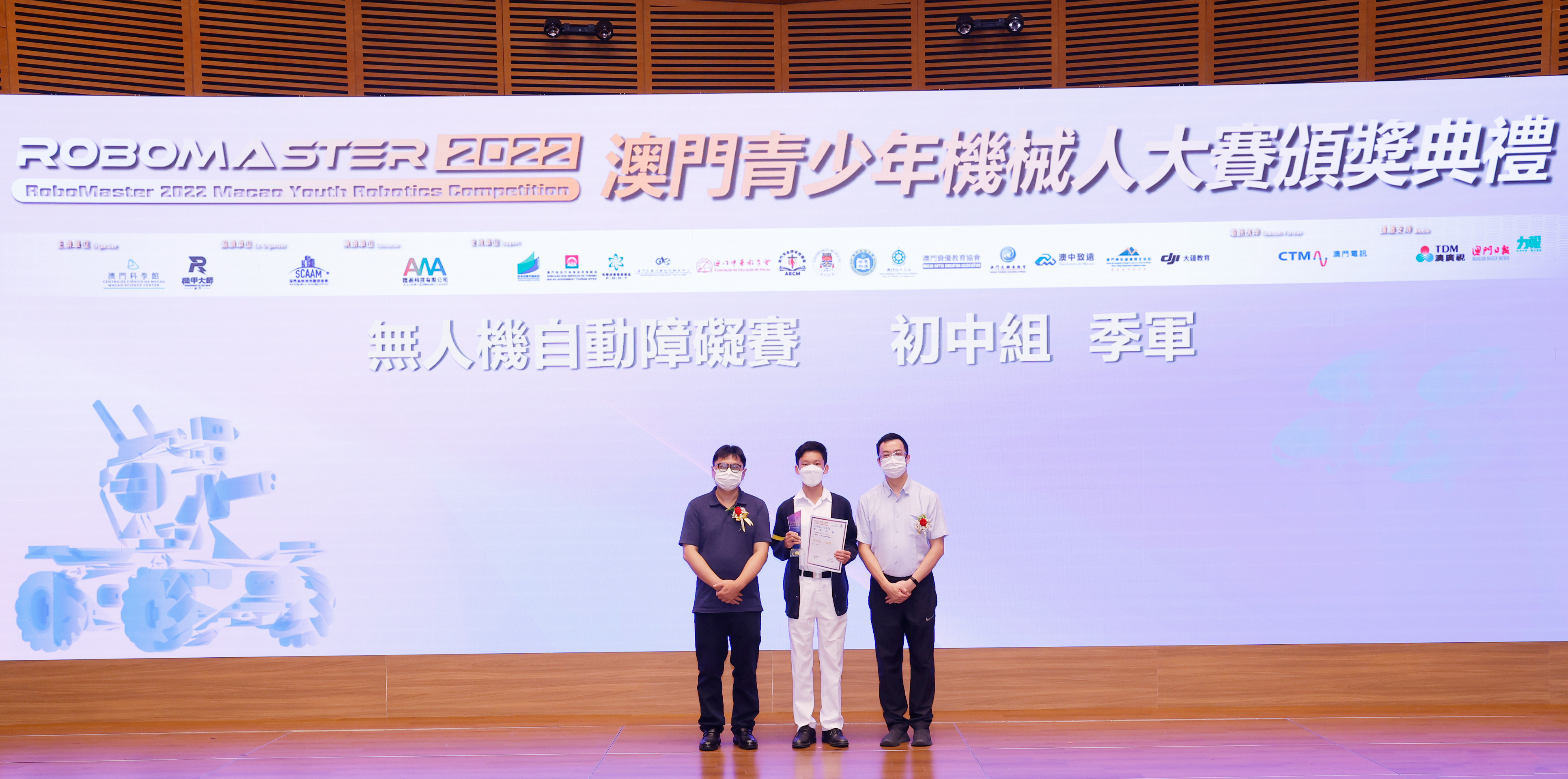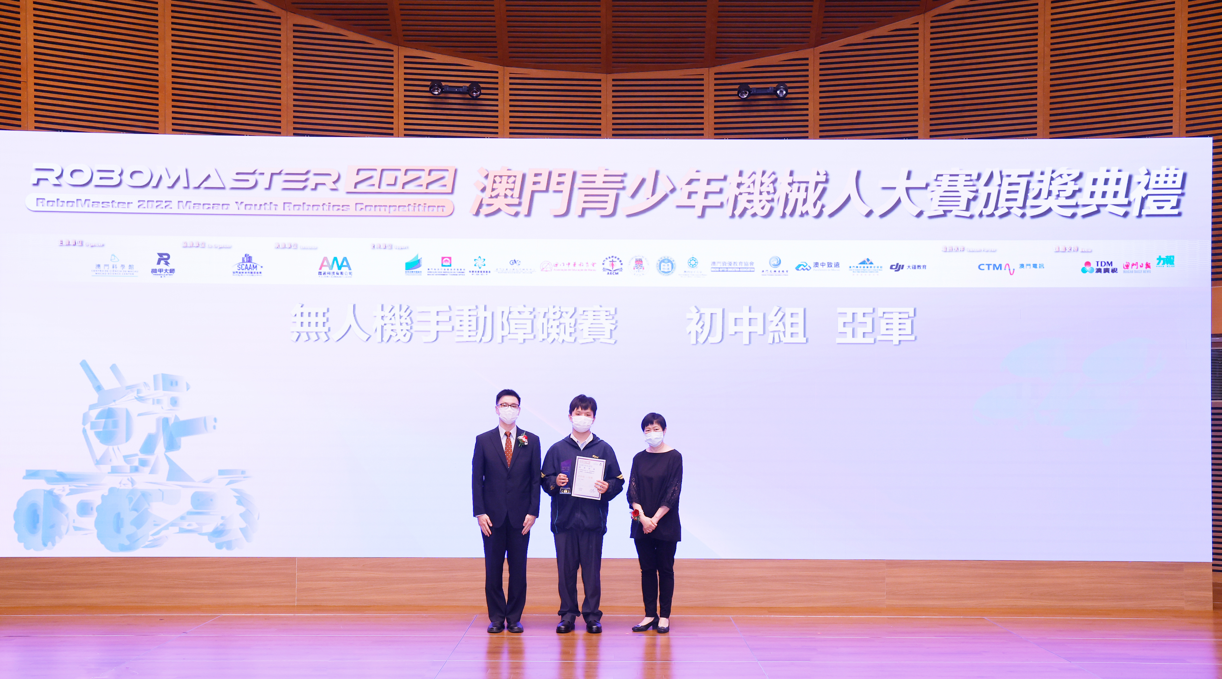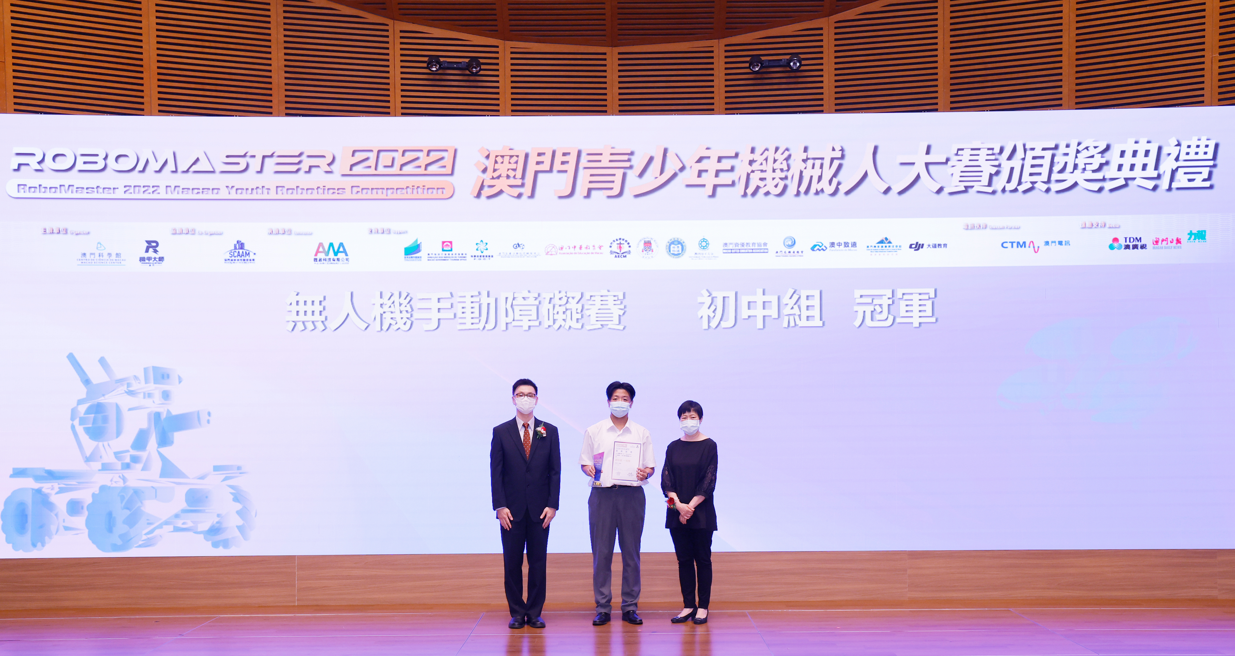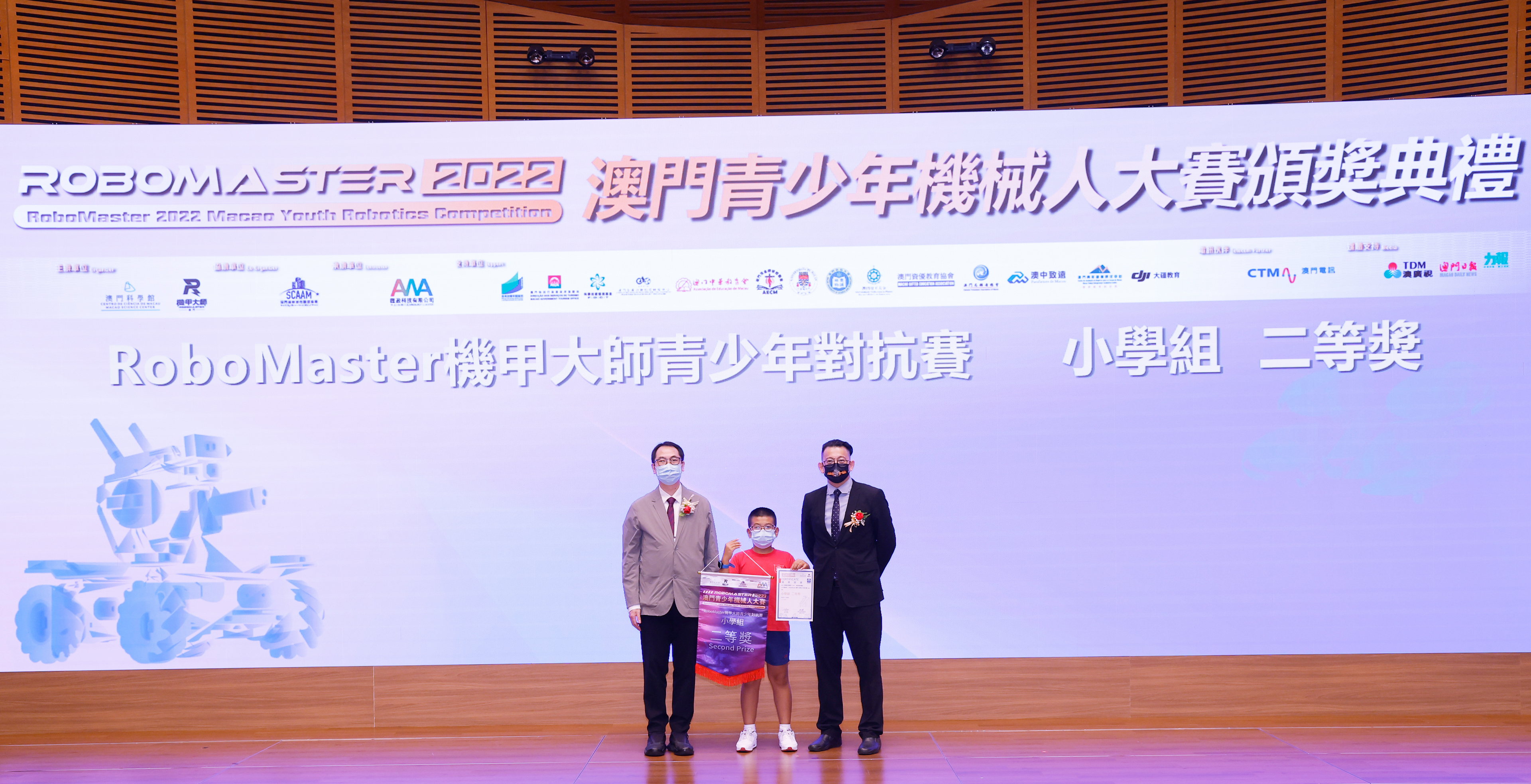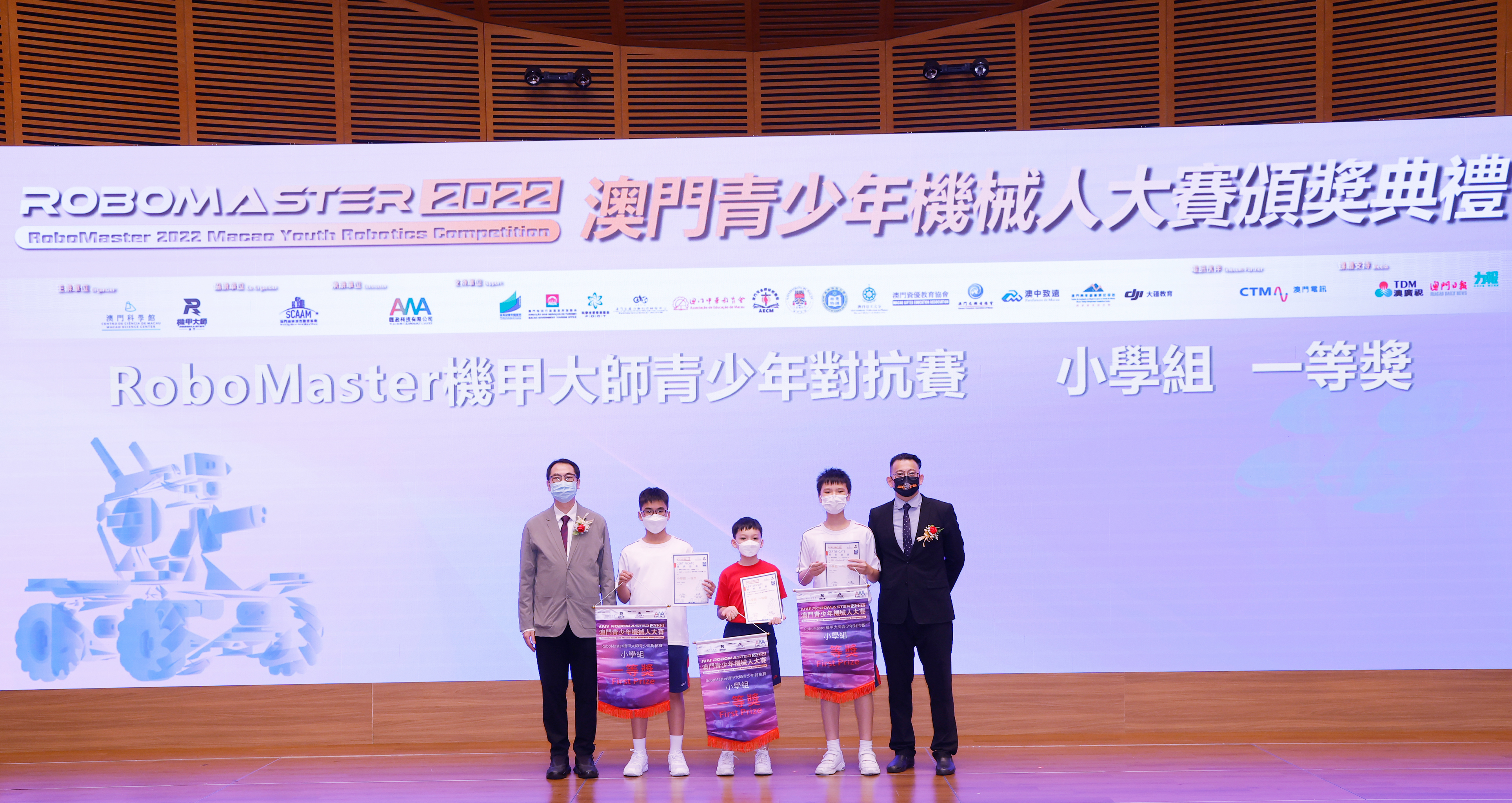 由澳門科學館和機甲大師澳門(國際)協會主辦,澳門智慧城市聯盟協會協辦,匯盈科技有限公司承辦的「RoboMaster 2022 澳門青少年機械人大賽」,在多個政府部門、機構和公司的大力支持,以及在澳門一眾學校領導及師生的積極參與和配合下,已於6月5日順利結束,並於今日在澳門科學館會議廳圓滿舉行頒獎典禮暨成果展,共23間學校約150名師生代表及優秀志願者等出席參與。本次賽事超過20間學校, 700余學生及老師參與不同賽項的競技中,通過比賽的形式為參賽隊員搭建一個全面機械人技術交流的平臺,形成濃厚的學術氛圍,他們在比賽中成長,在實踐中進步,並讓機械人競技和工程師文化進入大眾的視野,啟發更多懷有科技夢想的個人或群體,為地區科技創新發展助力。
