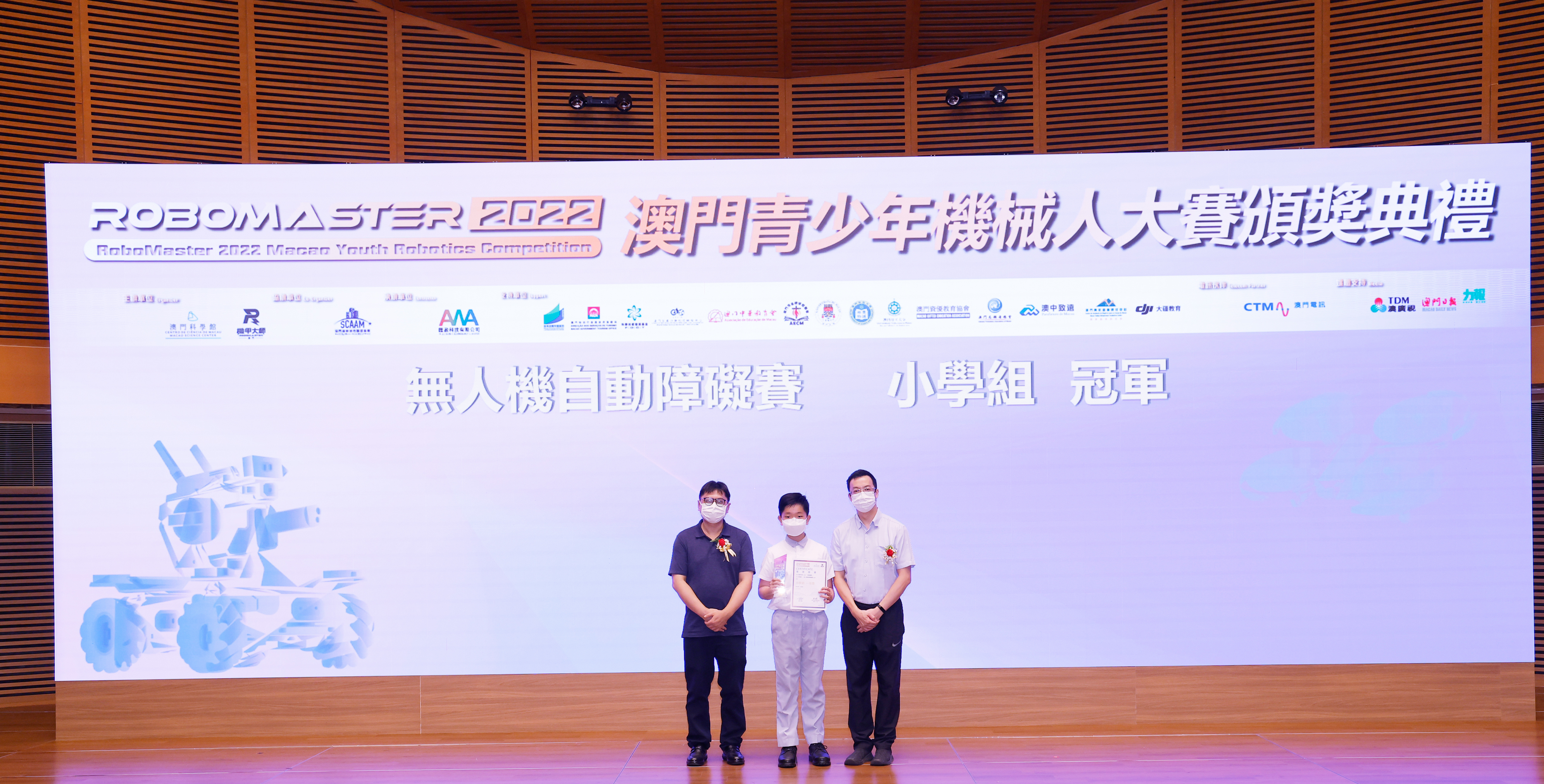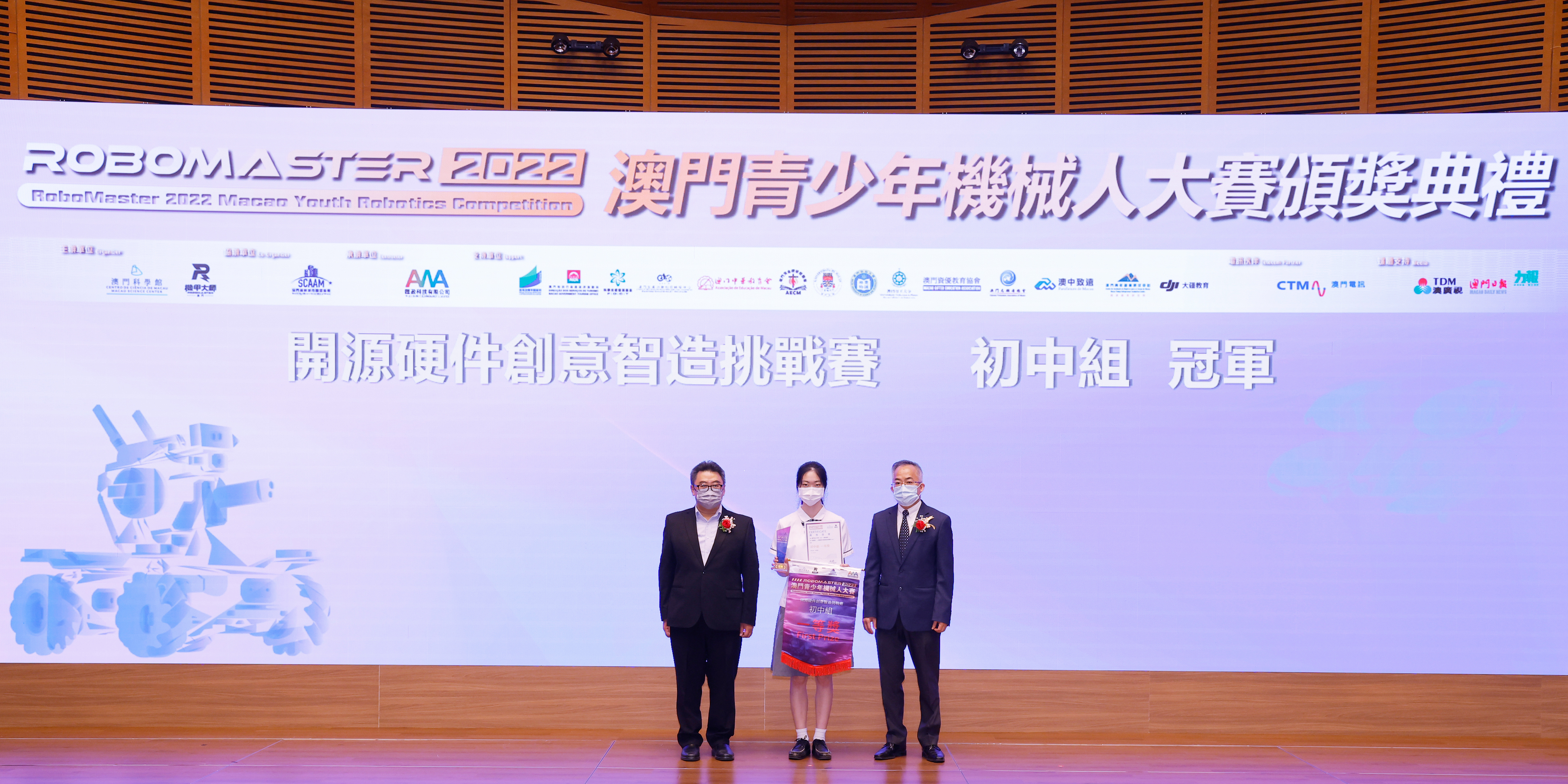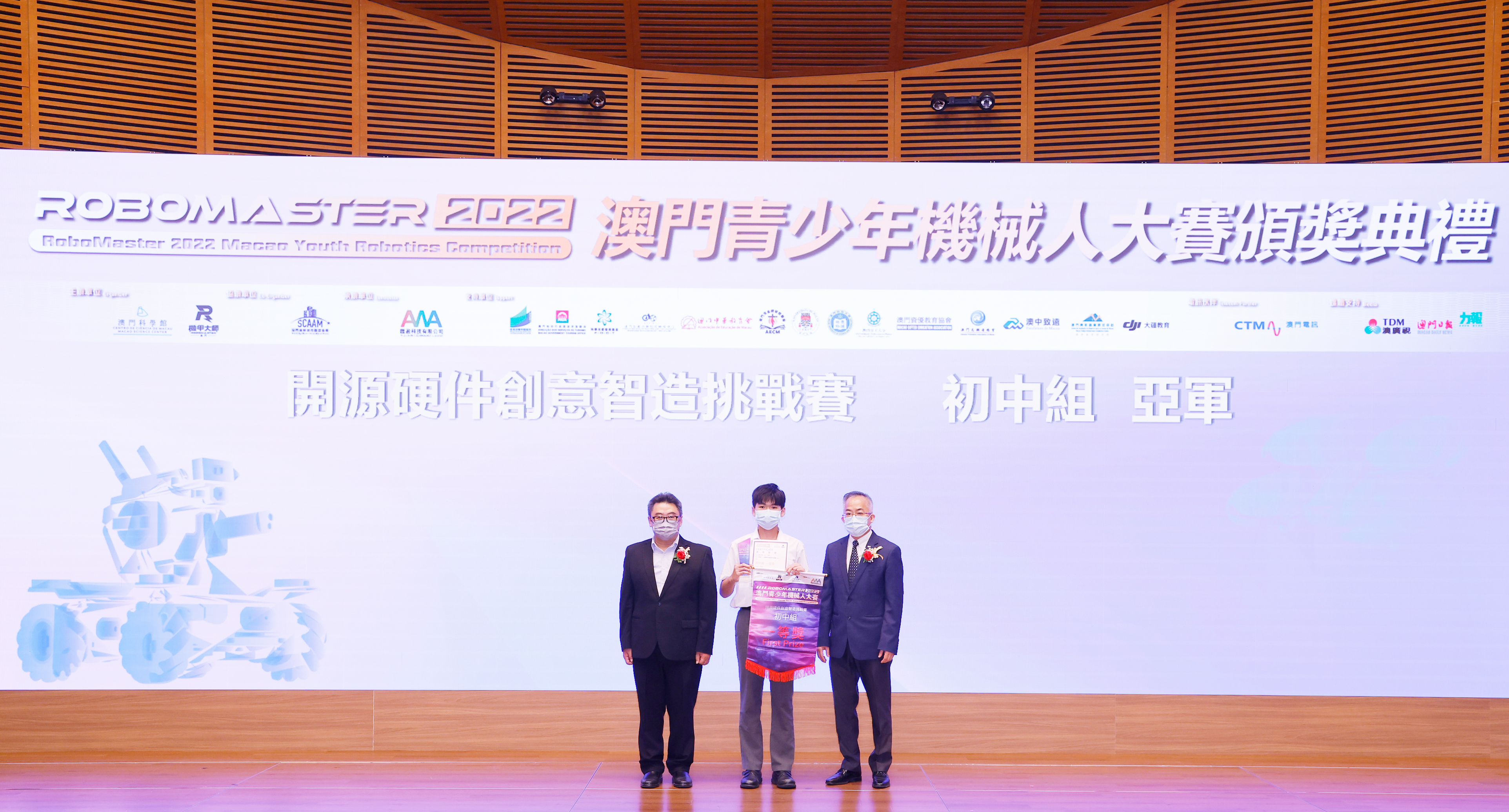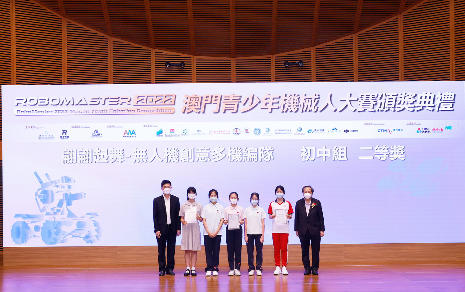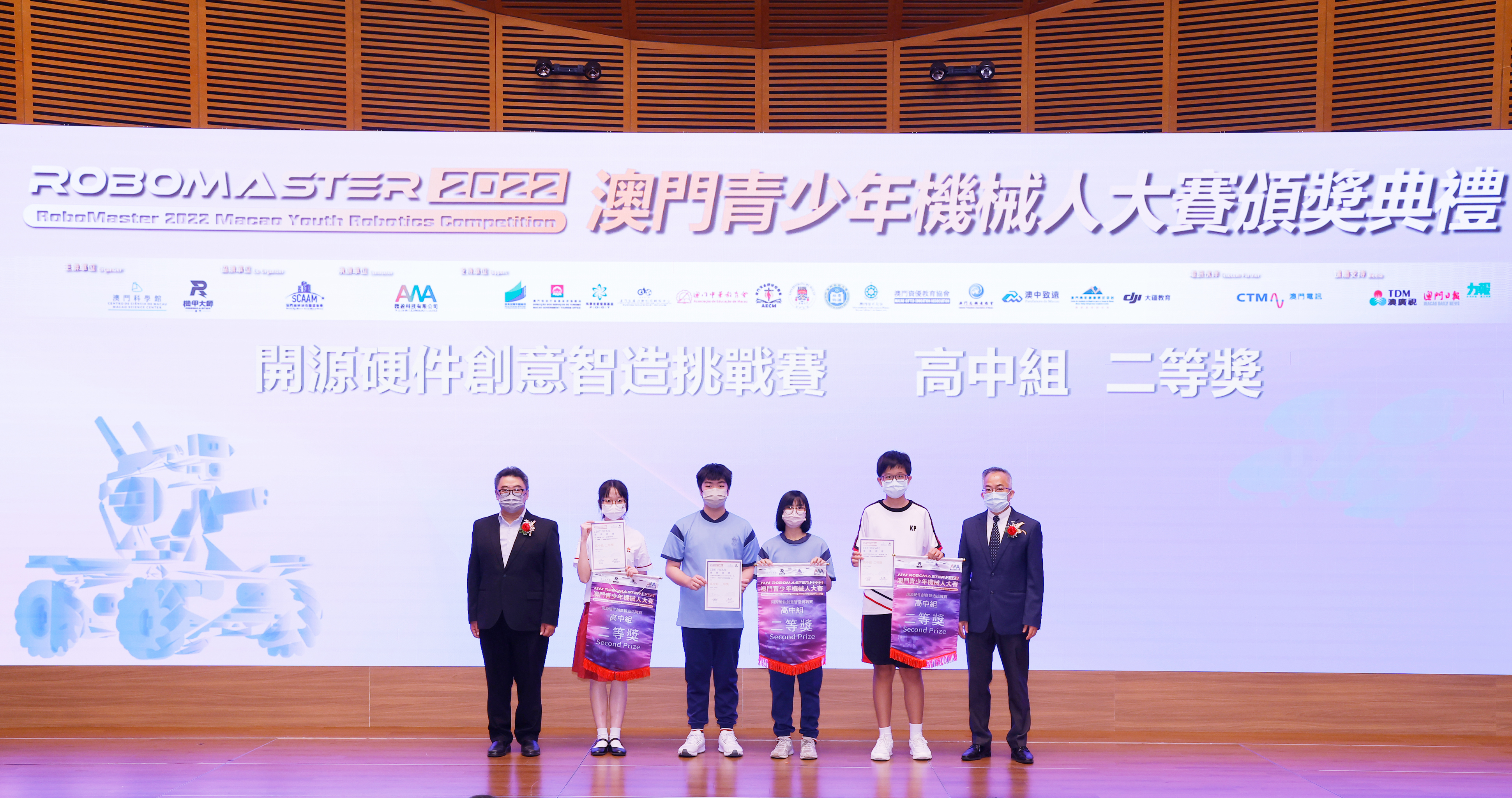 由澳門科學館和機甲大師澳門(國際)協會主辦,澳門智慧城市聯盟協會協辦,匯盈科技有限公司承辦的「RoboMaster 2022 澳門青少年機械人大賽」,在多個政府部門、機構和公司的大力支持,以及在澳門一眾學校領導及師生的積極參與和配合下,已於6月5日順利結束,並於今日在澳門科學館會議廳圓滿舉行頒獎典禮暨成果展,共23間學校約150名師生代表及優秀志願者等出席參與。本次賽事超過20間學校, 700余學生及老師參與不同賽項的競技中,通過比賽的形式為參賽隊員搭建一個全面機械人技術交流的平臺,形成濃厚的學術氛圍,他們在比賽中成長,在實踐中進步,並讓機械人競技和工程師文化進入大眾的視野,啟發更多懷有科技夢想的個人或群體,為地區科技創新發展助力。