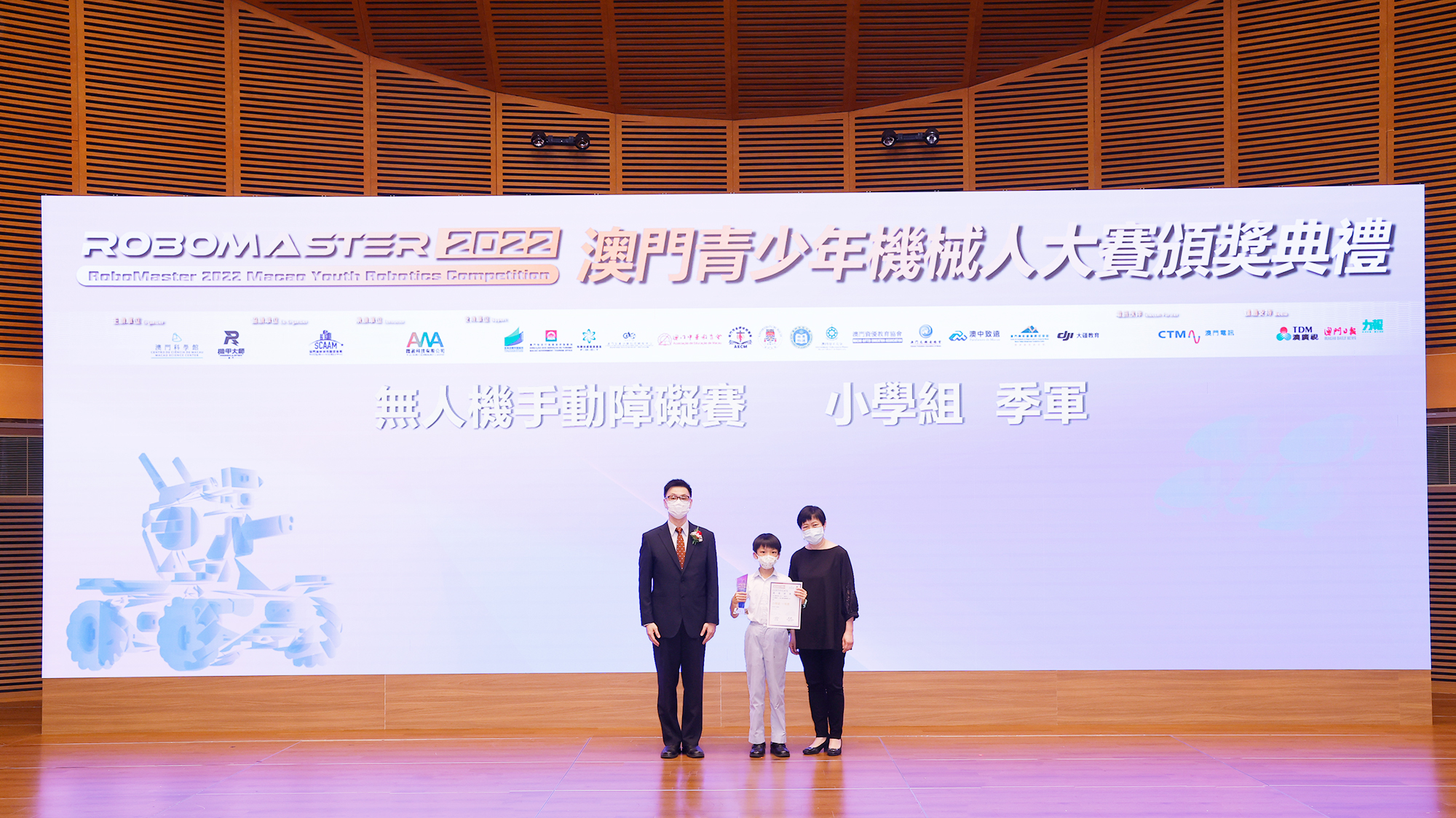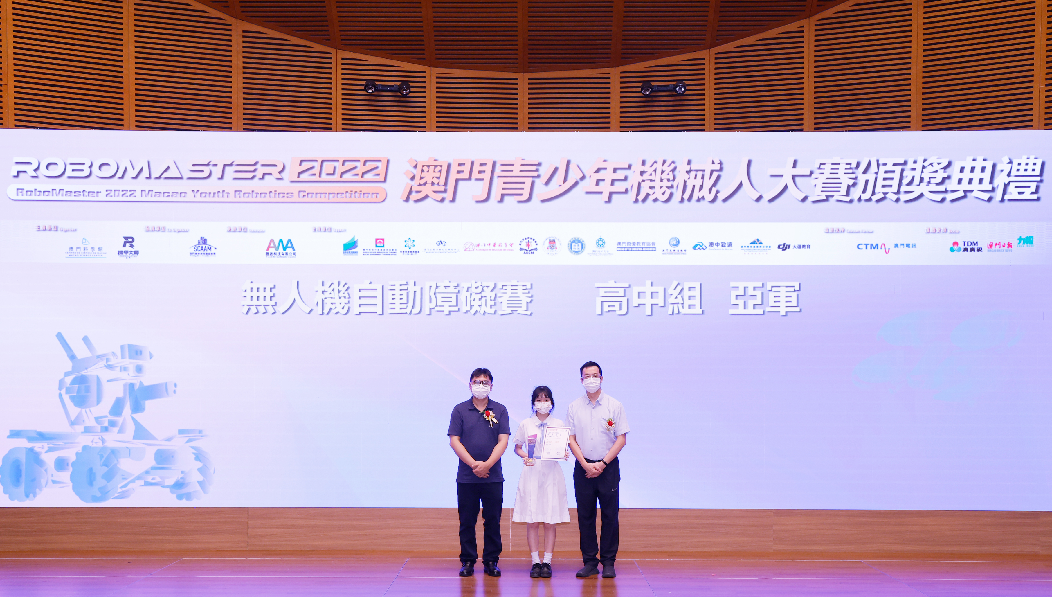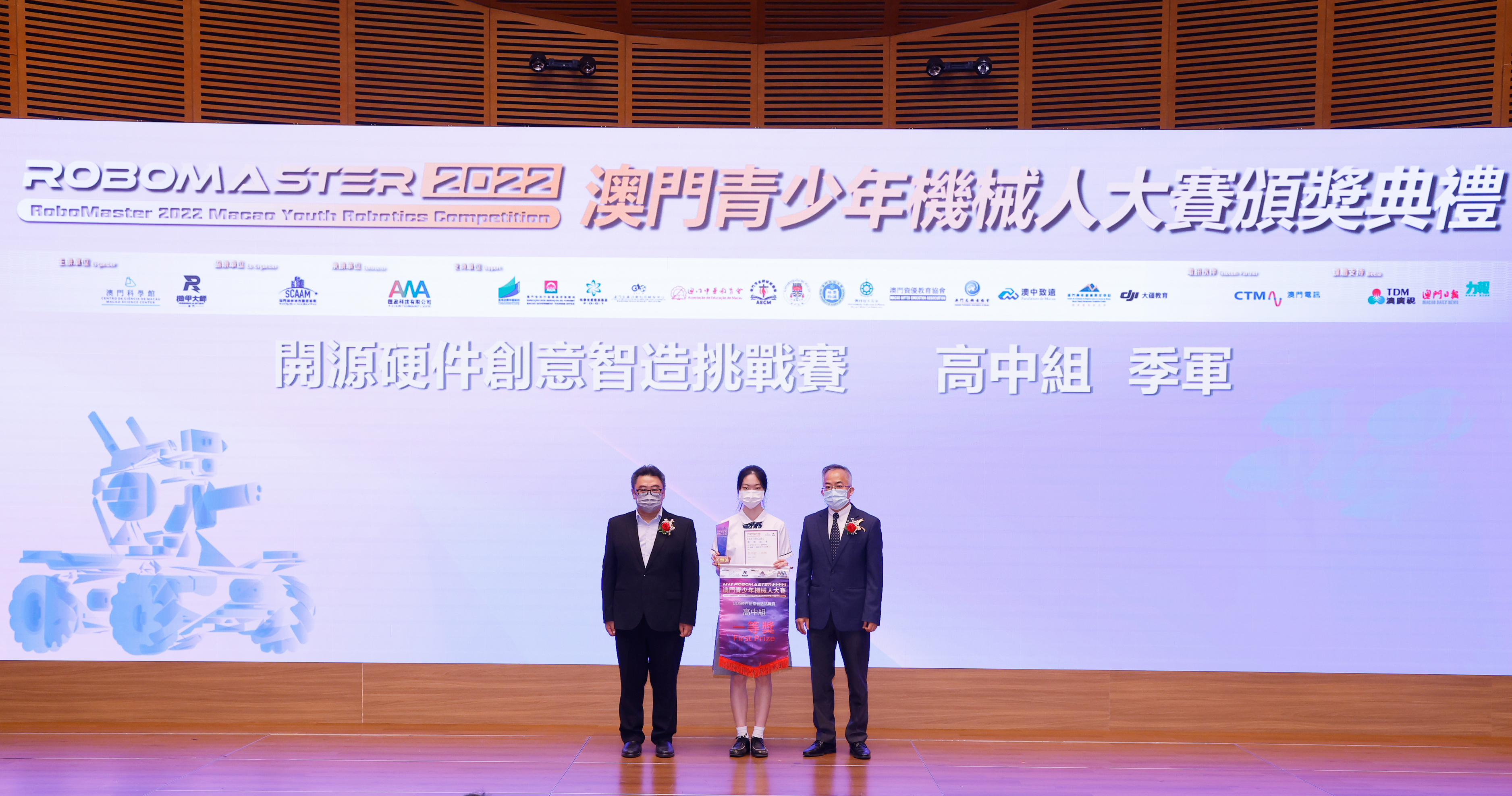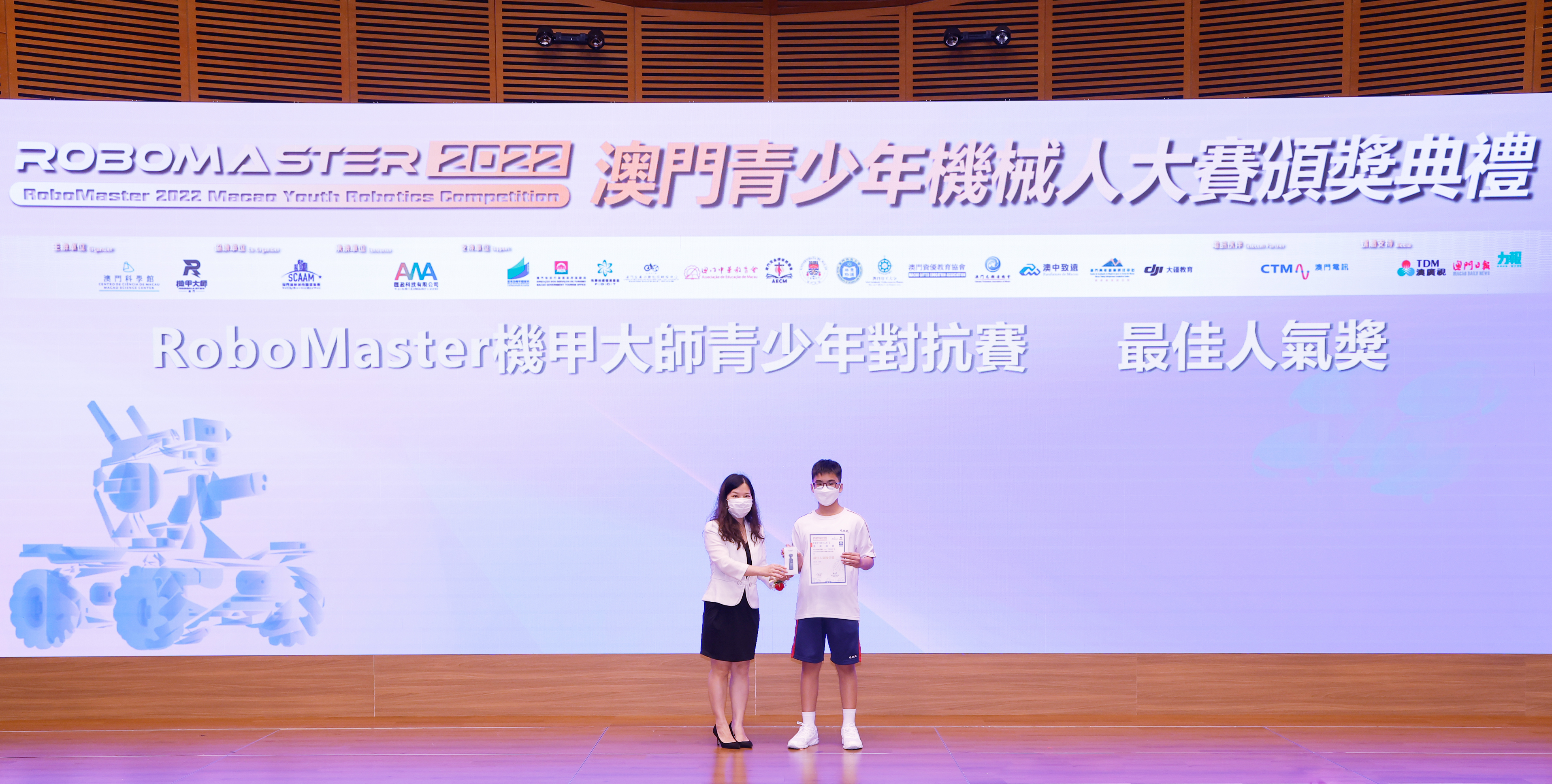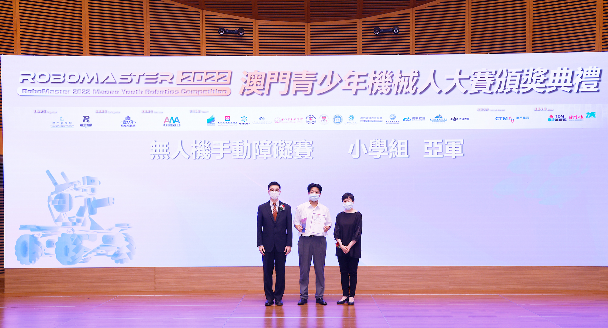 由澳門科學館和機甲大師澳門(國際)協會主辦,澳門智慧城市聯盟協會協辦,匯盈科技有限公司承辦的「RoboMaster 2022 澳門青少年機械人大賽」,在多個政府部門、機構和公司的大力支持,以及在澳門一眾學校領導及師生的積極參與和配合下,已於6月5日順利結束,並於今日在澳門科學館會議廳圓滿舉行頒獎典禮暨成果展,共23間學校約150名師生代表及優秀志願者等出席參與。本次賽事超過20間學校, 700余學生及老師參與不同賽項的競技中,通過比賽的形式為參賽隊員搭建一個全面機械人技術交流的平臺,形成濃厚的學術氛圍,他們在比賽中成長,在實踐中進步,並讓機械人競技和工程師文化進入大眾的視野,啟發更多懷有科技夢想的個人或群體,為地區科技創新發展助力。