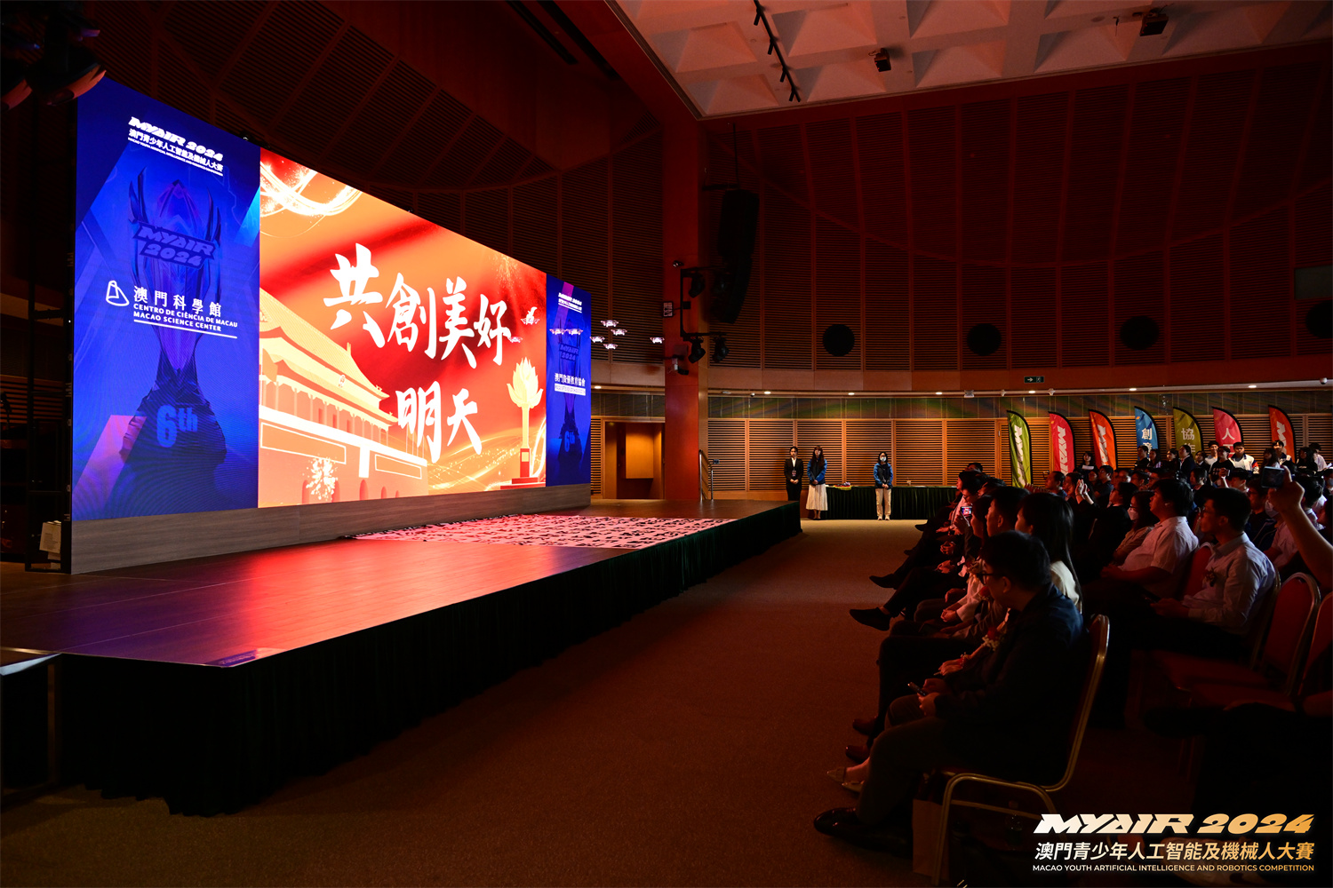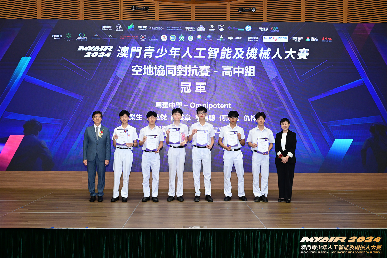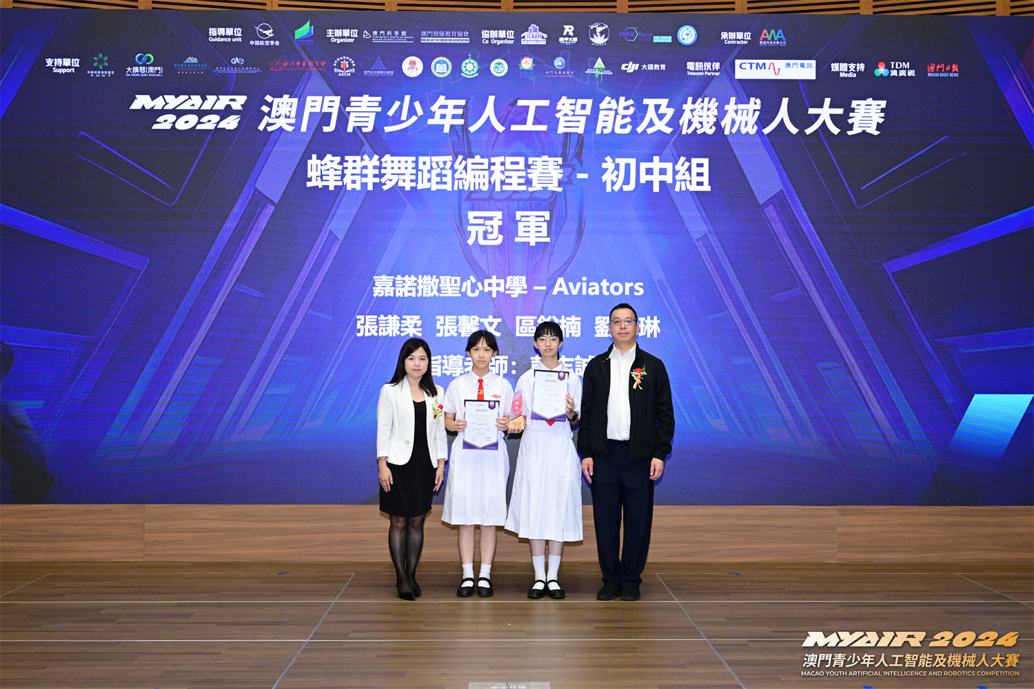 9月14日,由中國航空學會和澳門特別行政區政府教育及青年發展局指導,澳門科學館和澳門資優教育協會主辦,匯盈科技有限公司承辦的「MYAIR2024澳門青少年人工智能及機械人大賽」頒獎禮在澳門科學館會議廳圓滿落下帷幕。中央人民政府駐澳門特別行政區聯絡辦公室教青部代表林震宇、澳門特別行政區政府教育及青年發展局學生綜合發展處處長李艷琪、澳門資優教育協會會長徐莉莉出席儀式並擔任頒獎嘉賓。比賽自三月份一直持續到六月底,共吸引37所澳門中小學組成294支隊伍參加,參與人数達一千五百人次,賽事規模再創歷年新高。