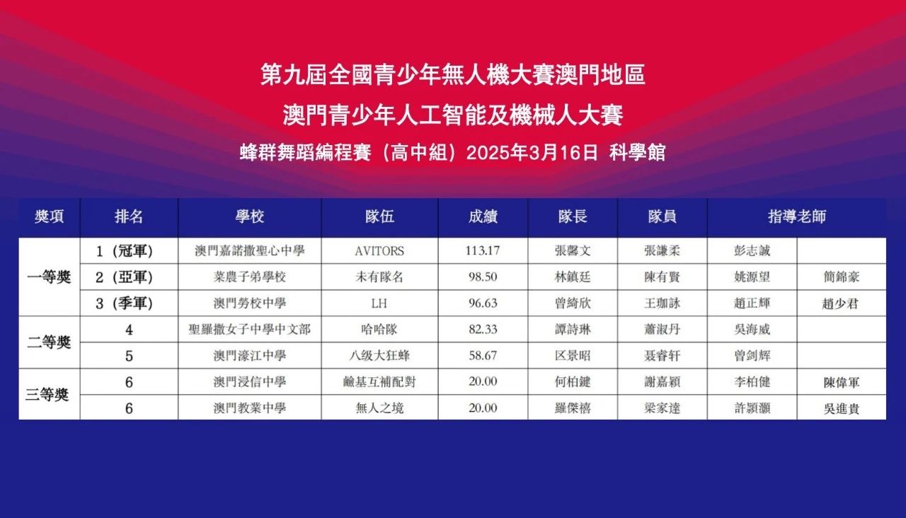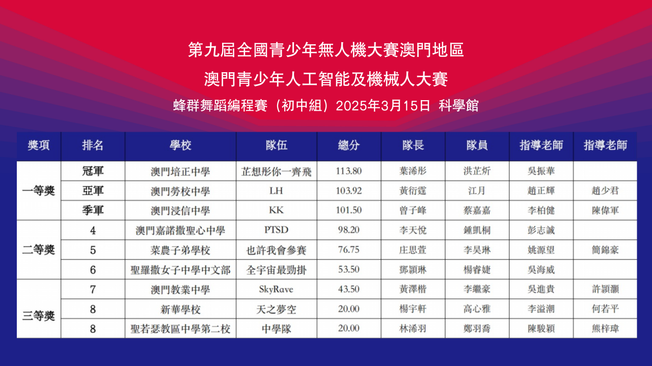 冠軍:澳門培正中學 芷想彤你一齊飛隊