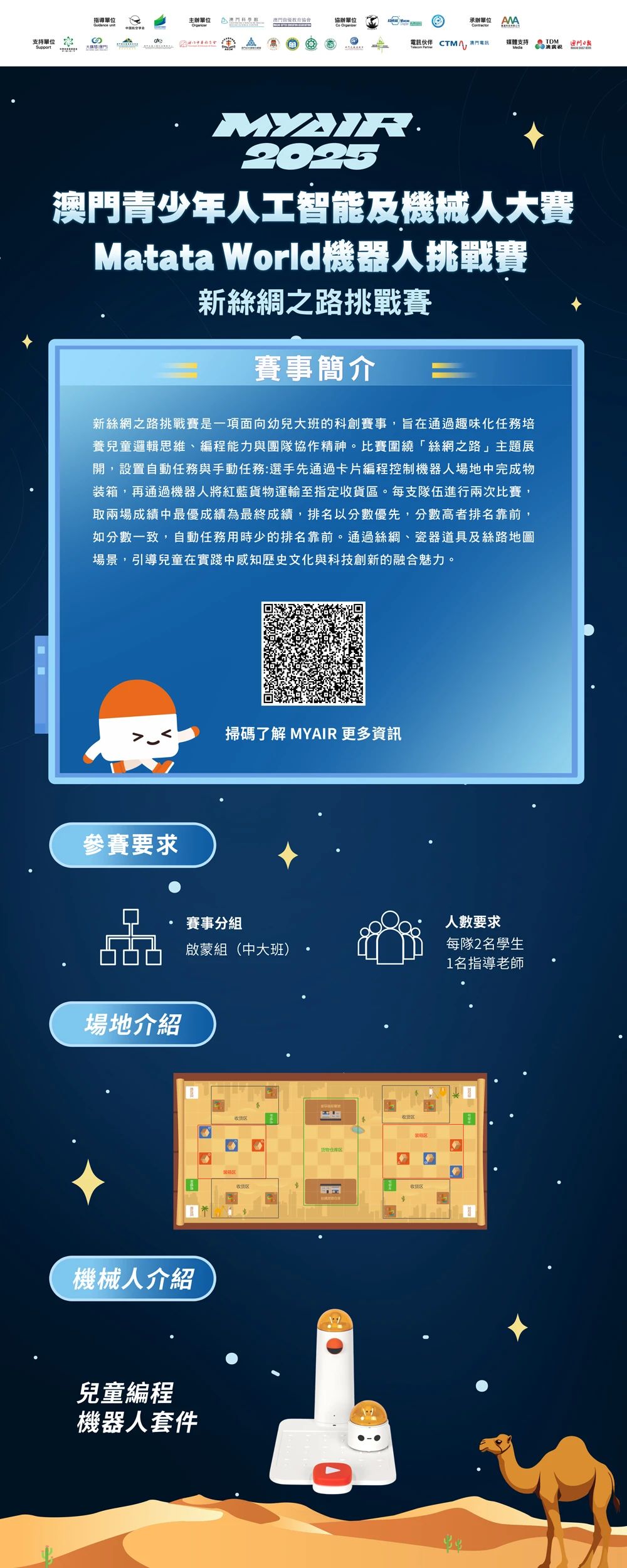 三大組別 挑戰升級 幼兒組(新絲綢之路挑戰賽) 透過“貨物裝箱”與“貨物運輸”任務,培養幼兒的基礎編程思維與團隊協作能力,帶領孩子探索絲綢之路經濟帶的建設意義。