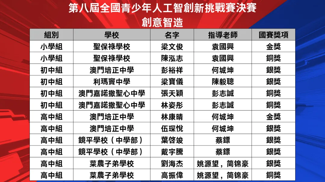 MYAIR2025澳門青少年人工智能及機械人大賽國賽頒獎禮圓滿落幕|澳門學子全國賽創佳績,展現創新力量