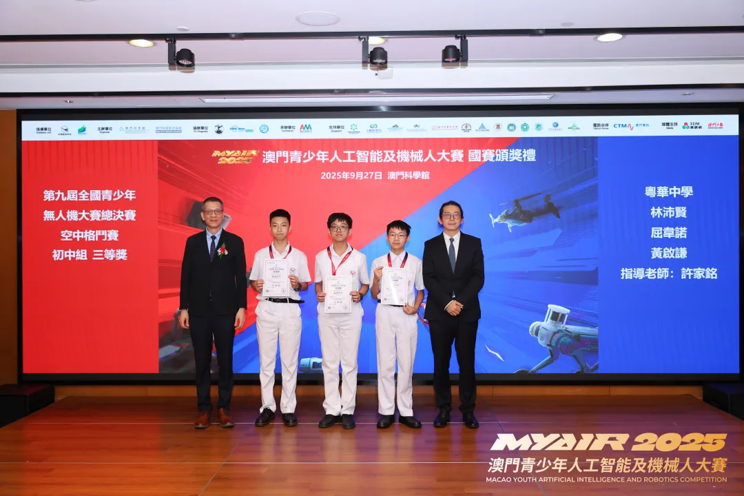 「MYAIR2025澳門青少年人工智能及機械人大賽」國賽頒獎儀式於9月27日在澳門科學館會議中心圓滿舉行!