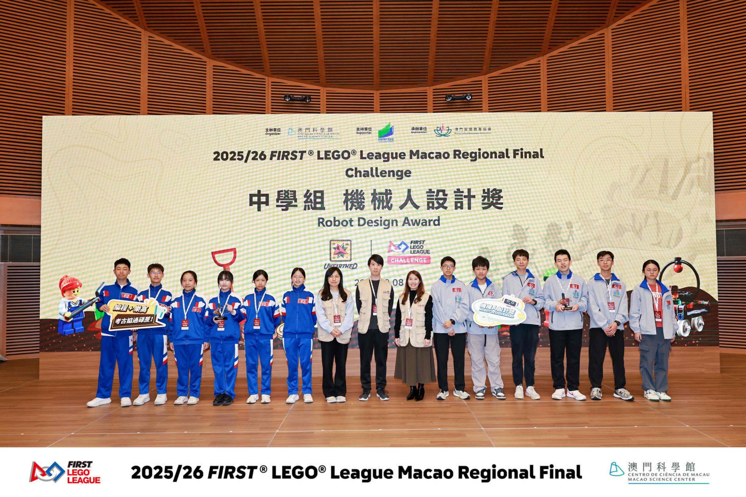 經過激烈的角逐與創意碰撞,2025/26 FIRST® LEGO® League Macao Regional Final Challenge賽項於2月8日圓滿落幕。賽場上湧動著無盡的創意與熱情,小小工程師們不僅展現了精巧的機器人搭建技藝,更在團隊合作、項目陳述與核心價值實踐上,為我們帶來了一場充滿驚喜的科技盛宴。